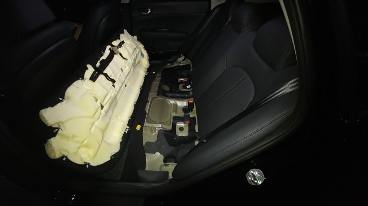 이제 카메라 선을 네비까지 보내기 위해서 2열 시트를 탈거하고 배선을 트렁크쪽으로 넘깁니다..
